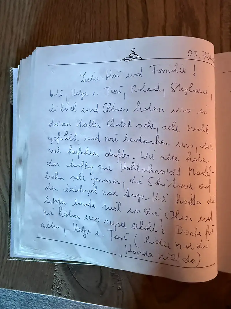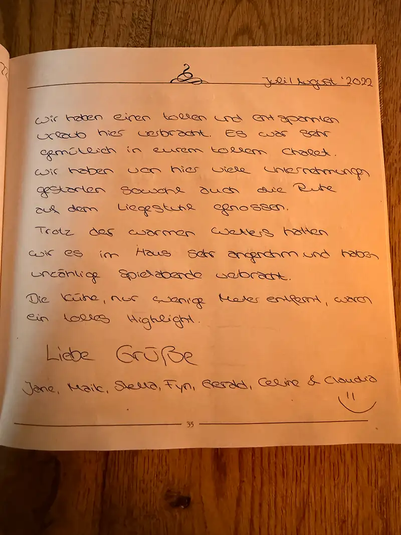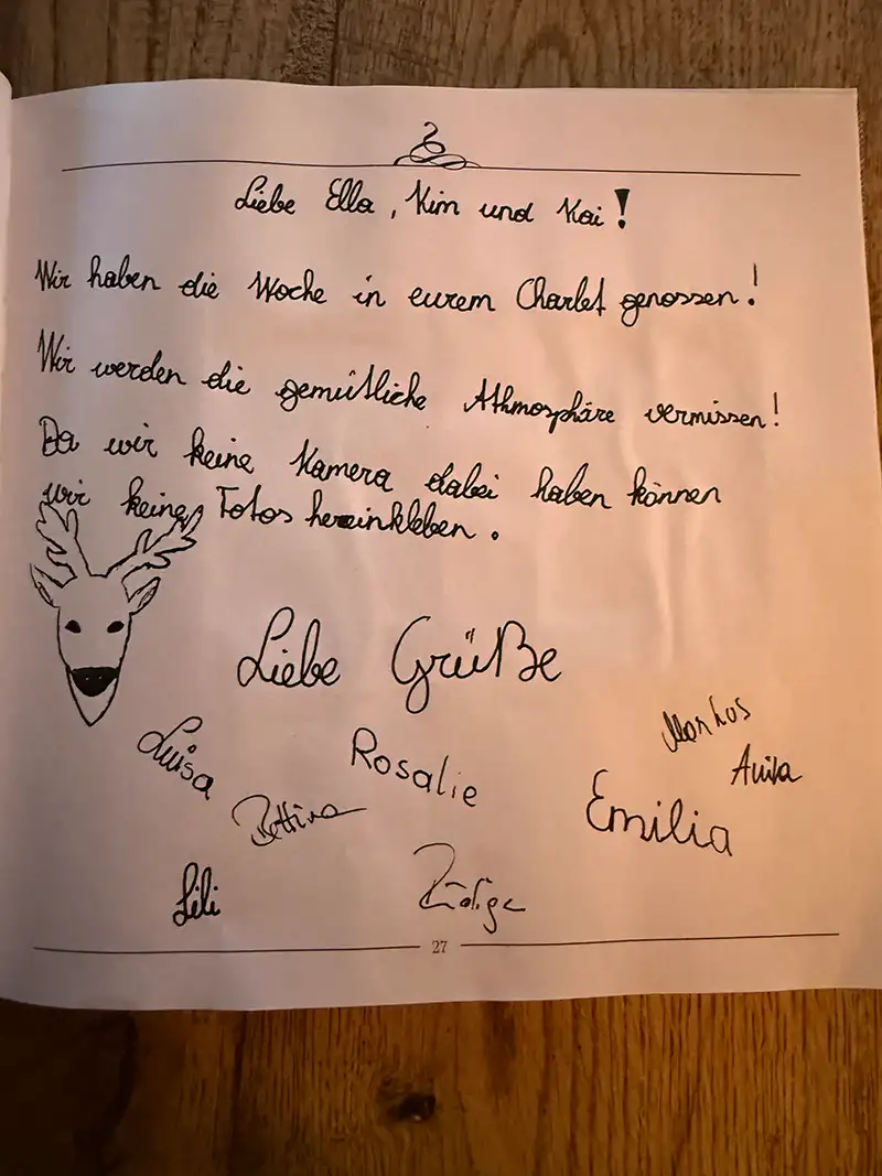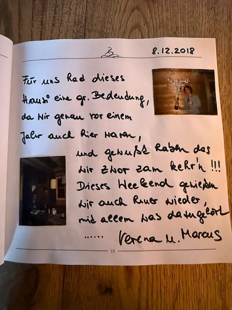 Im Gästebuch des Chalets finden sich Worte, die mehr sagen als Bewertungen. Sie erzählen von Ankommen, Entschleunigung und Momenten, die lange in Erinnerung bleiben.