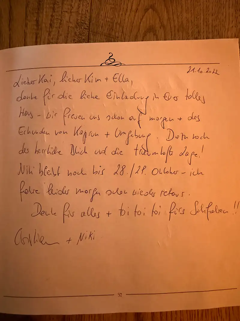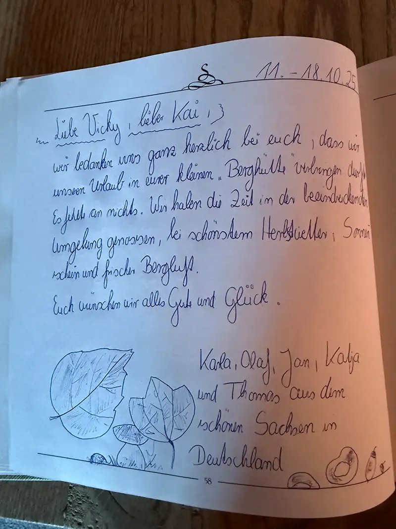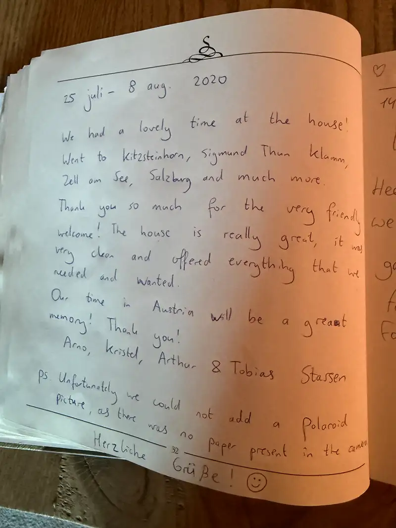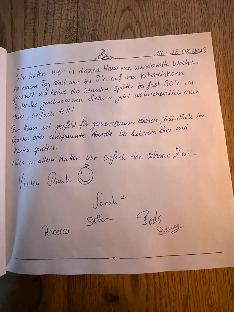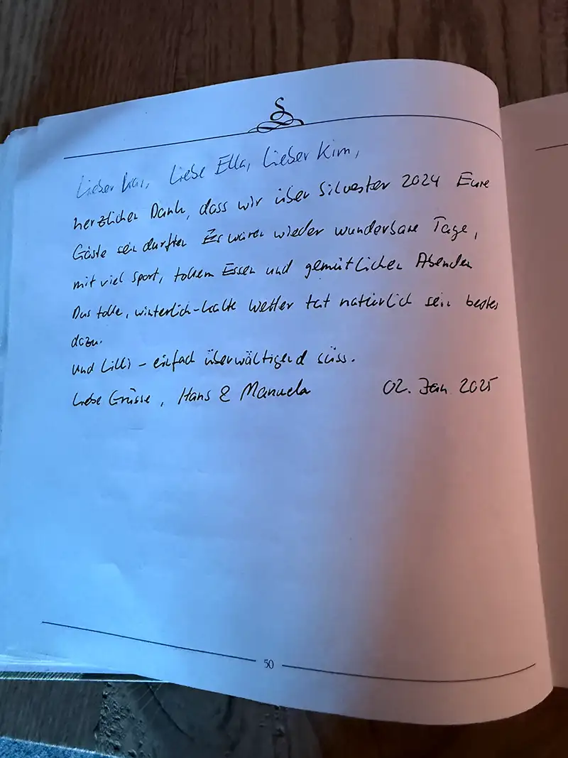Im Gästebuch des Chalets finden sich Worte, die mehr sagen als Bewertungen. Sie erzählen von Ankommen, Entschleunigung und Momenten, die lange in Erinnerung bleiben.